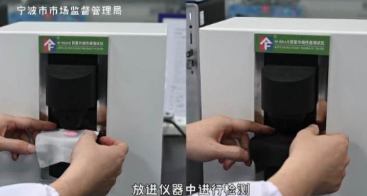 实验人员在相同材质的样品中,分别选取黑色和白色面料,放进仪器中进行检测。