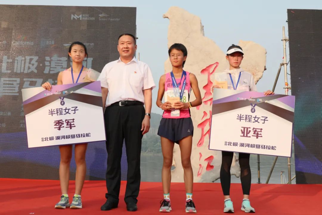 漠河市委书记吴庆军为女子半程冠亚季军颁奖。