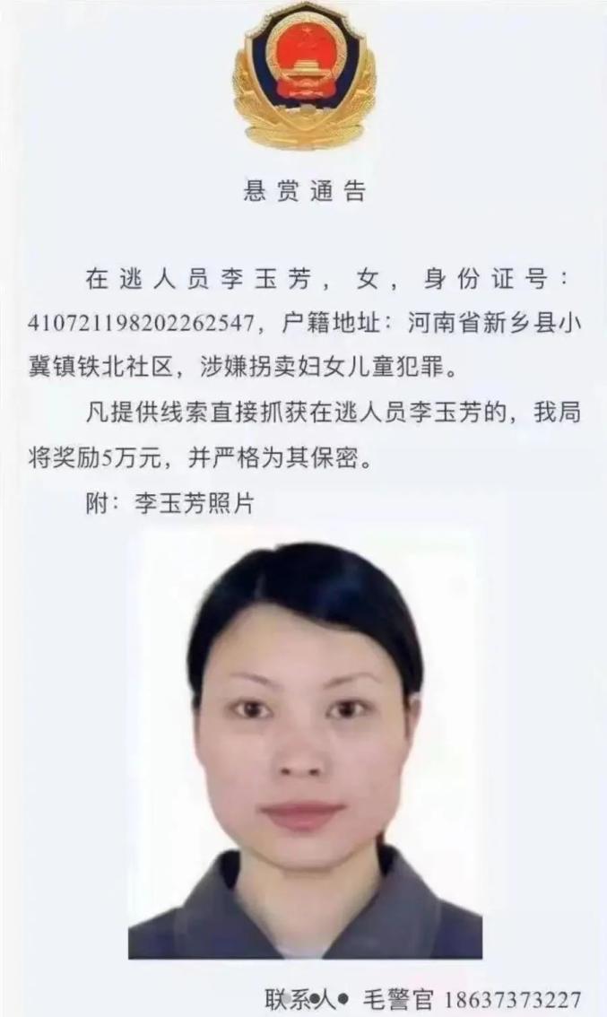 据了解,“李玉芳”是一名外省涉嫌拐卖妇女儿童犯罪的在逃人员,7月2日被河南警方在网上发布悬赏通缉,目前对此人正在通缉中。