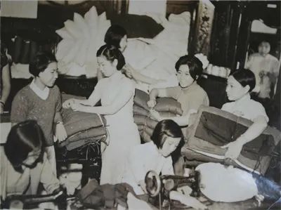 图为中国妇女抗敌后援会在上海何香凝寓所赶制慰问品(二排左三为胡兰畦)。