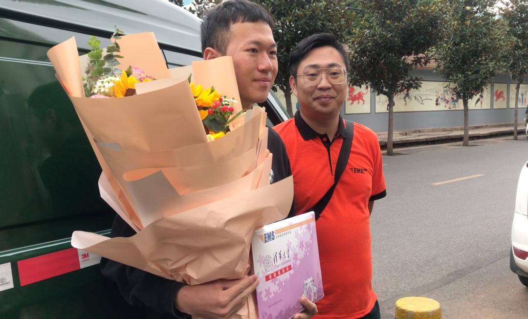 “恭喜你被清华大学录取,请签收你的通知书。”当天上午9时,邮政EMS揽投员来到昆明考生所在的小区,在核对完有效身份证、准考证后,把来自清华大学的录取通知书交到魏桐手中。