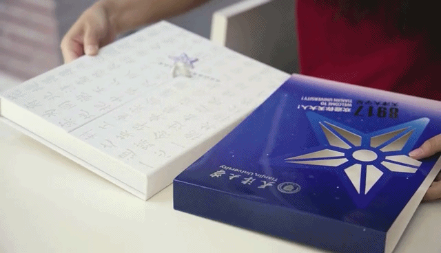 星空中,有一颗位于火星与木星之间的8917号小行星,被命名为“天津大学星”。而在录取通知书的开合处,就放有一颗可温感变色的“天津大学星”,用手触摸就可以变色~