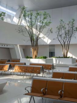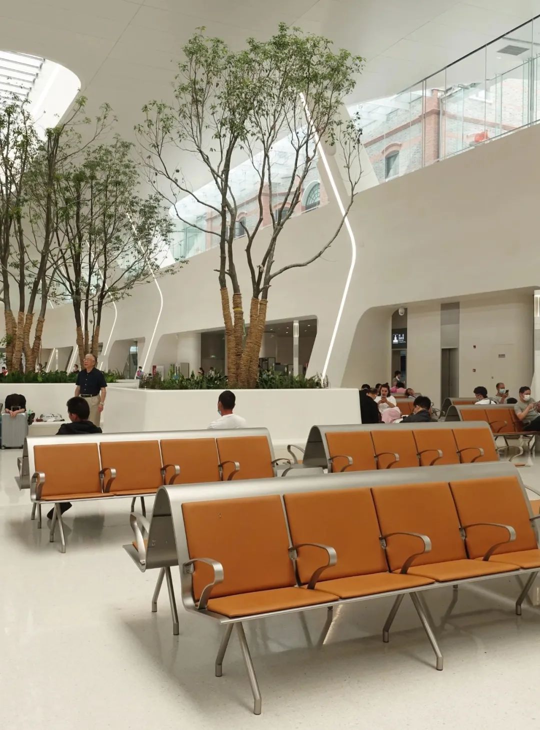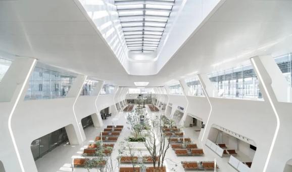 以老站房为主的精神轴线贯穿始终,两侧种满榉木。这些绿色的树一直延伸到候车厅,让整个空间变得年轻有活力。