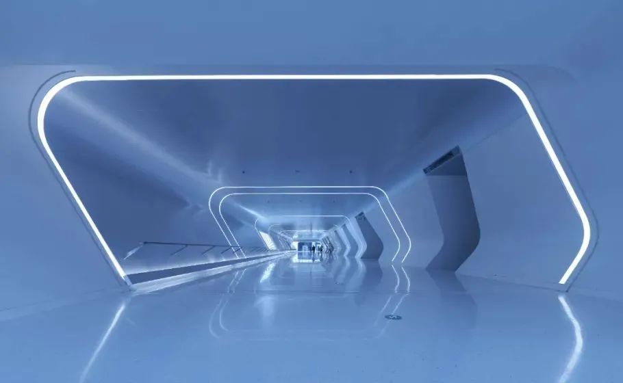 从候车厅前往站台的地下隧道,线条充满未来感,感觉走过去就穿越到1921了。
