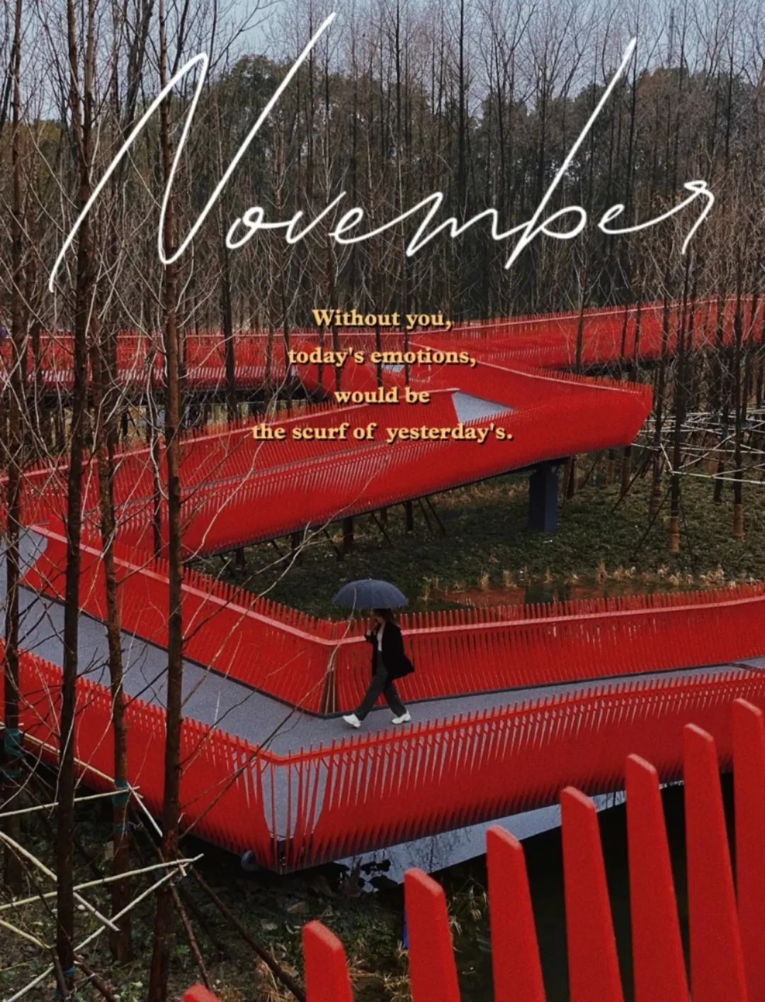 西南湖的红色空中廊桥去年刚开通,就成网红打卡地了。从放鹤洲公园的入口进去,经过黄绿的波浪形桥面,就是红色的空中廊桥了。
