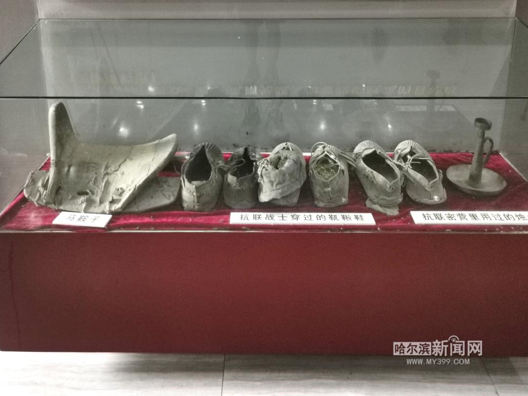 展示陈列馆内,抗联战士穿过的靰鞡鞋、抗联密营里用过的烛台、抗联战士用过的木勺子等从民间收集而来的珍贵文物,安静地躺在陈列柜中,时间的痕迹在一件件老物件上流淌,峥嵘岁月的一桩桩红色往事慢慢浮现。