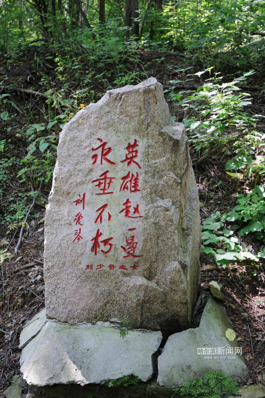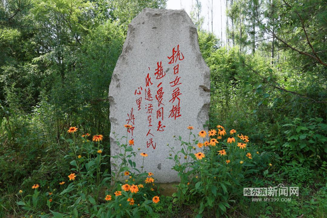 右侧“赵一曼烈士殉国地”纪念碑文由著名作家莫言于2020年题写。