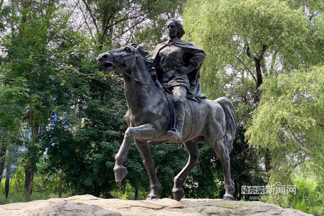 红衣白马,英姿飒爽。来到赵一曼烈士殉国地,巾帼英雄催马冲锋的雕像便映入眼帘。