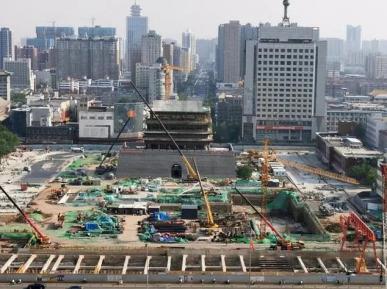五一广场提质改造工程是我市传承厚重历史文脉、弘扬伟大革命精神、提升城市品质形象的重点工程,于去年8月正式封闭施工。结合这里的历史性、文化性、纪念性等特征,五一广场将深挖30米,在地下部分建设地铁换乘站和配套商业设施;地上部分则在中轴线上,由北向南依次设置仿古建筑、国旗台和纪念群雕三大元素,以“千年城道”理念拉通南北广场。