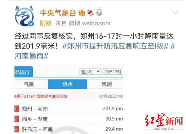 7月17日起,河南省大部分地区出现了强降雨天气,多地出现暴雨、大暴雨,郑州、焦作、济源等地出现特大暴雨。据河南省气象局官微消息,郑州市过去24小时降雨量达457.5毫米,20日16-17时降雨量达201.9毫米,单日降雨量突破建站以来历史极值,单小时降雨量超日历史极值,郑州市防汛抗旱指挥部已决定自7月20日16时起将防汛Ⅱ级应急响应提升至I级。