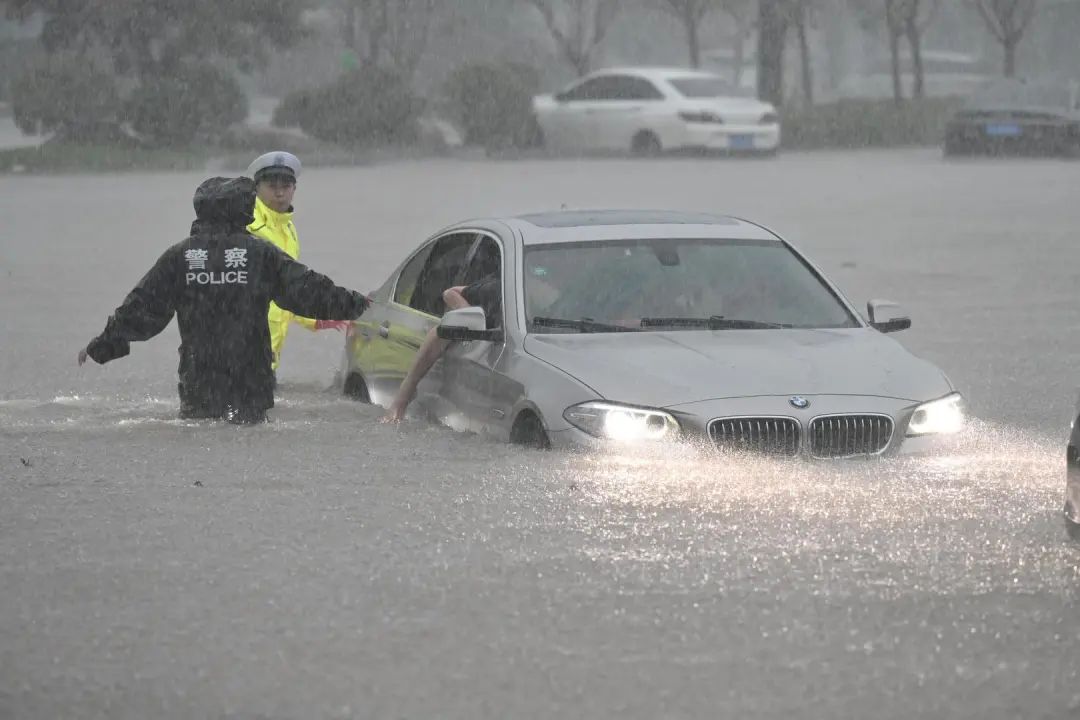 ↑7月20日,河南郑州大暴雨,市区车辆涉水前行。图据视觉中国