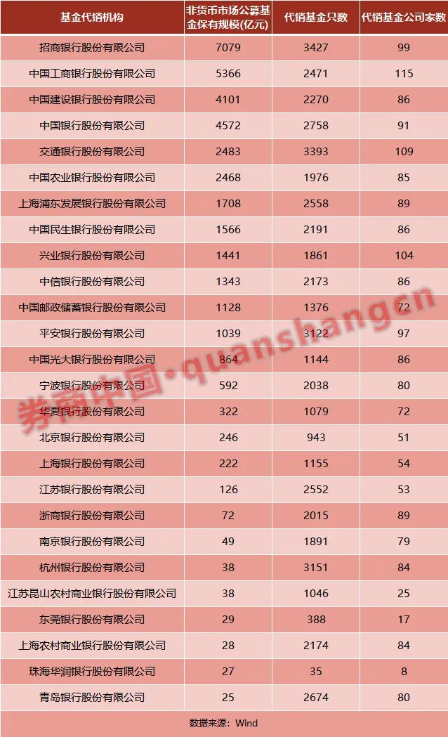 其次是颇受关注的基金代销。基金业协会公布的一季度销售机构公募基金销售保有规模数据,又赤裸裸地揭露一个事实:在代销基金这个这么重要的关键领域,招行已经强势问鼎,工、建、中行排名顺位下降。浦发在代销规模上紧追农行,且在代销基金指数和家数上,均已超越农行。