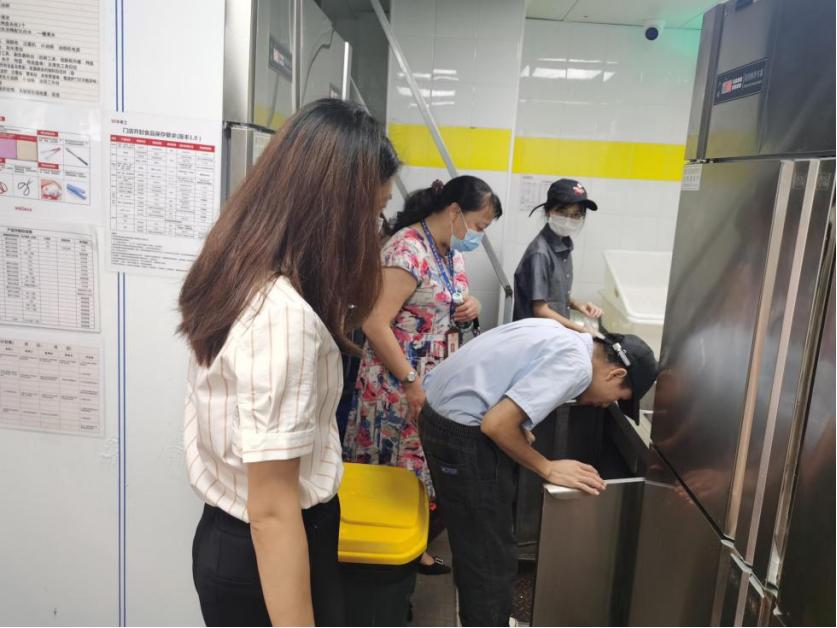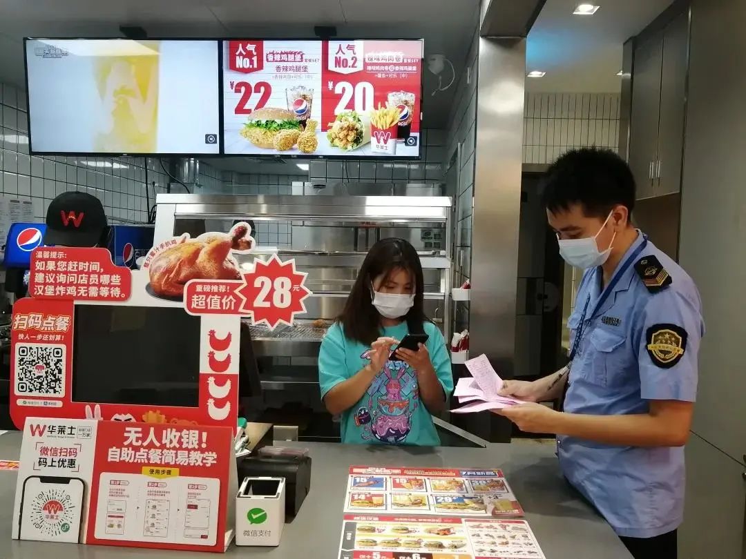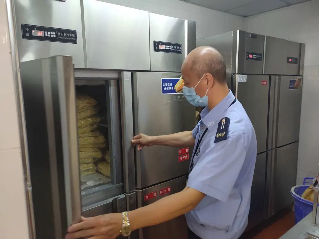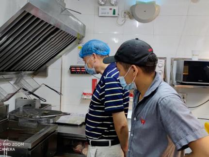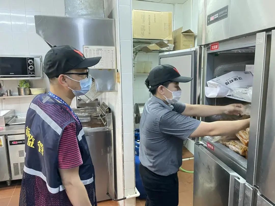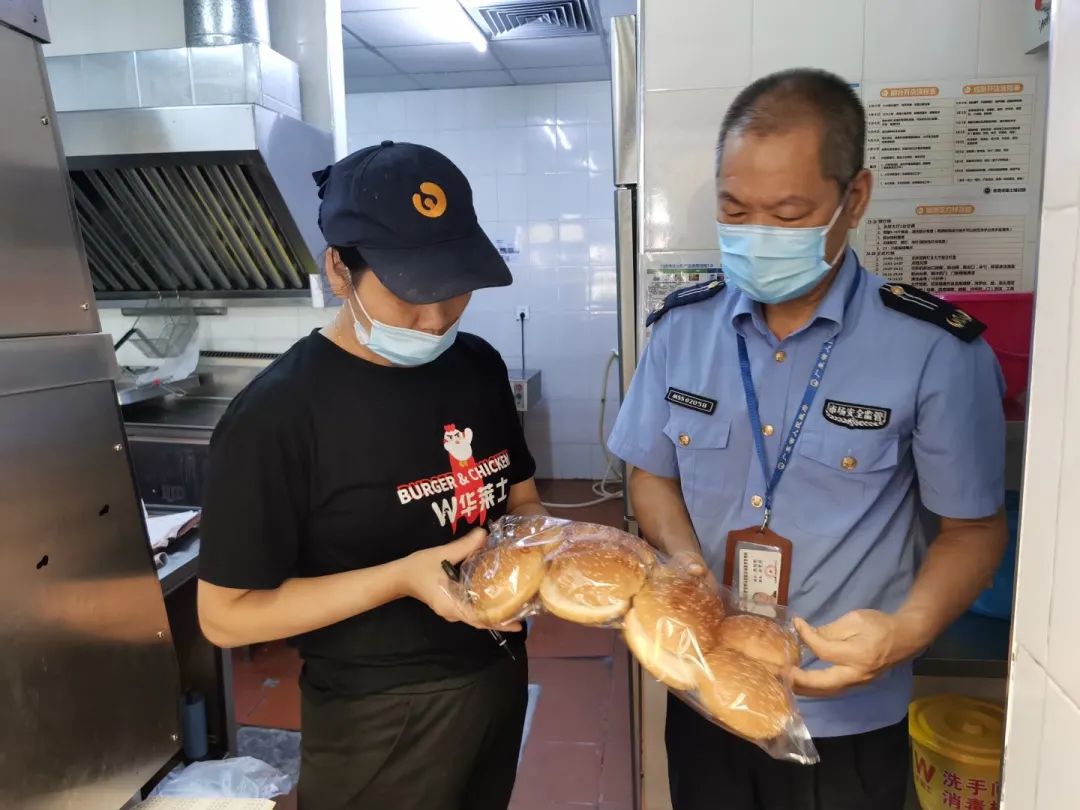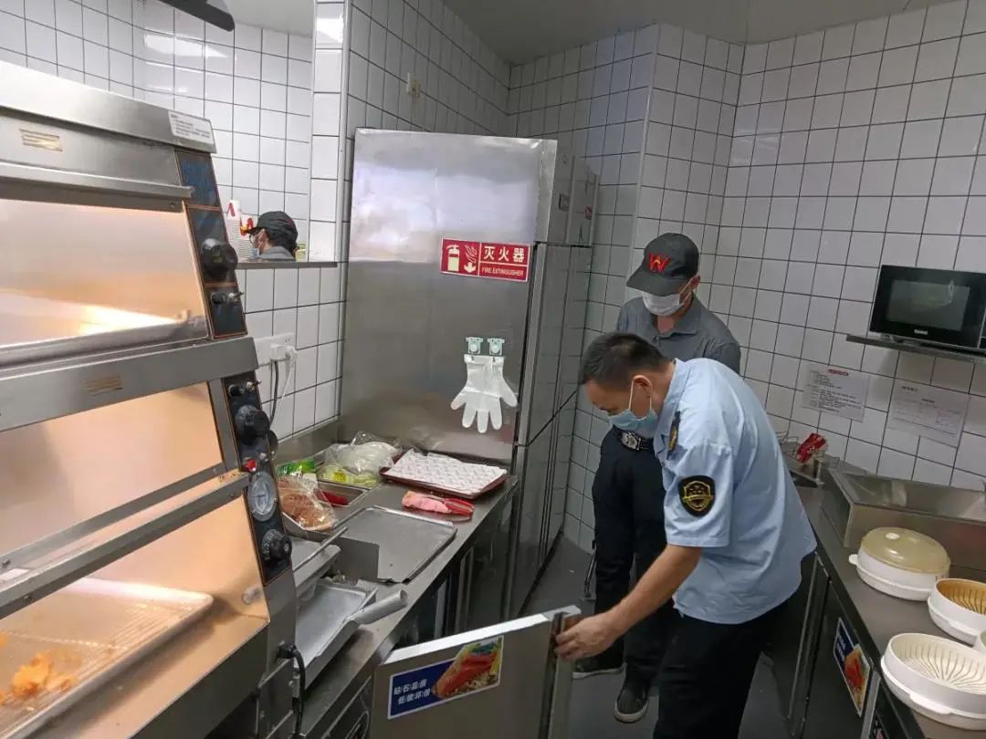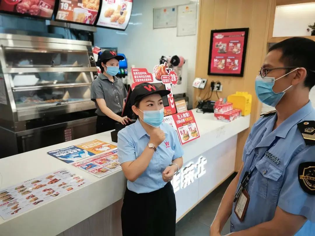 ▲为保障群众舌尖上的安全,禅城区市场监管局结合“我为群众办实事”实践活动,迅速对辖区内的39家华莱士门店开展食品安全隐患排查。