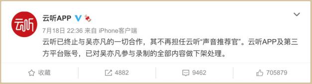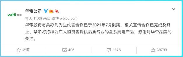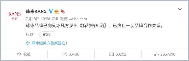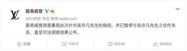 7月20日凌晨,宝格丽发布消息称,决定从即日起终止与吴亦凡的合作关系。