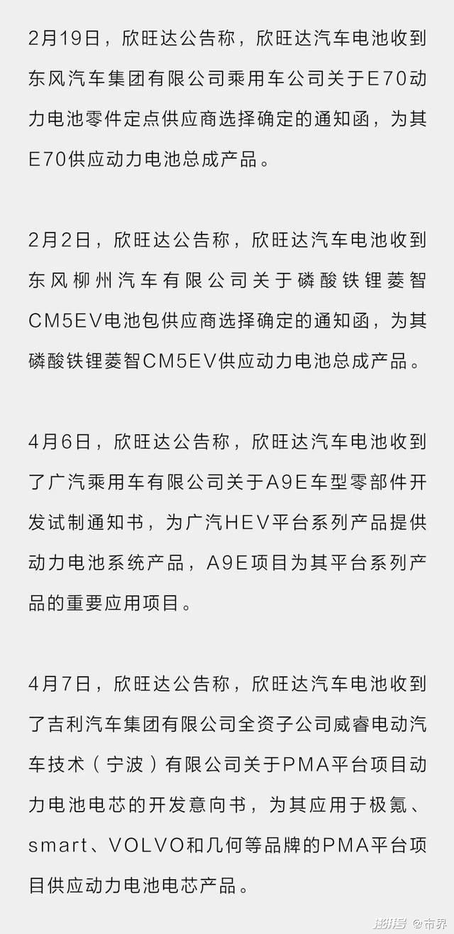 进入今年以来,欣旺达接连拿下吉利、广汽、东风等国内主流整车厂订单,欣旺达在动力电池市场正迎来爆发之势。