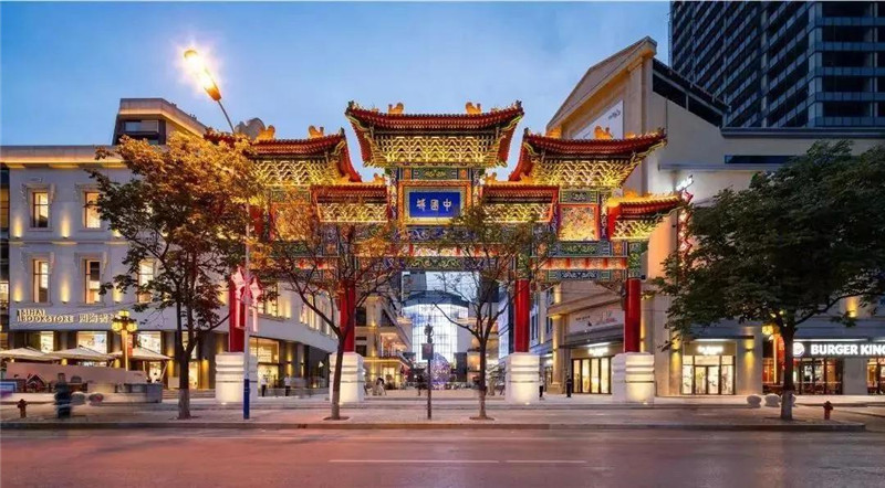 走进街区,现在大家看见的几个牌坊,是复刻各国的唐人街牌坊,也是几个入口的标志。进来后我们就仿佛来到了海外唐人街,穿梭于澳洲、欧美、南洋、北美之间,世界各国不同风格的建筑在这里完美融合。