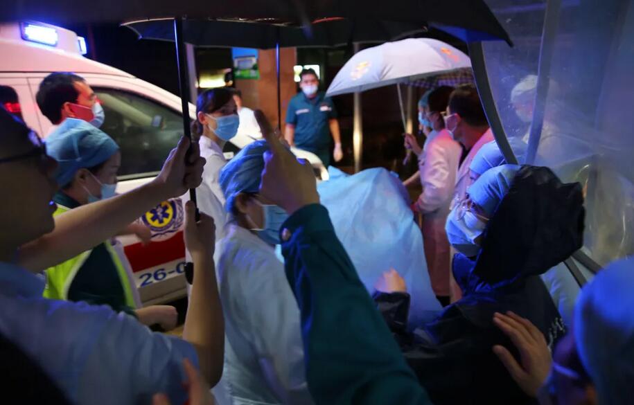 一趟趟,一位位,暴雨中,郑州市九院救援人员全身往下滴水,衣服湿了被暖干,被暖干了又湿。当晚由于时间紧迫,好多人都饿着肚子,再加上暴雨的影响,气温比较低。大家谁也没有顾及到寒冷和饥饿,全身心参与抢救。