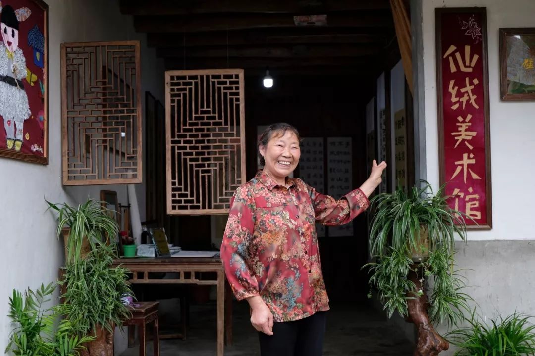 “欢迎来仙绒美术馆参观,吃蓝莓啊!”走进葛家村仙绒美术馆,一位奶奶指着家门口的一株蓝莓树,热情招待游客。她是叶仙绒,今年67岁,宁海葛家村仙绒美术馆的馆长,美术馆就是她利用自家一幢房屋自费建成。带游客参观的志愿者告诉记者,别小看这家藏在小山村里的美术馆,每年有超10万人次前来游览,已经成了村里的打卡之处。
