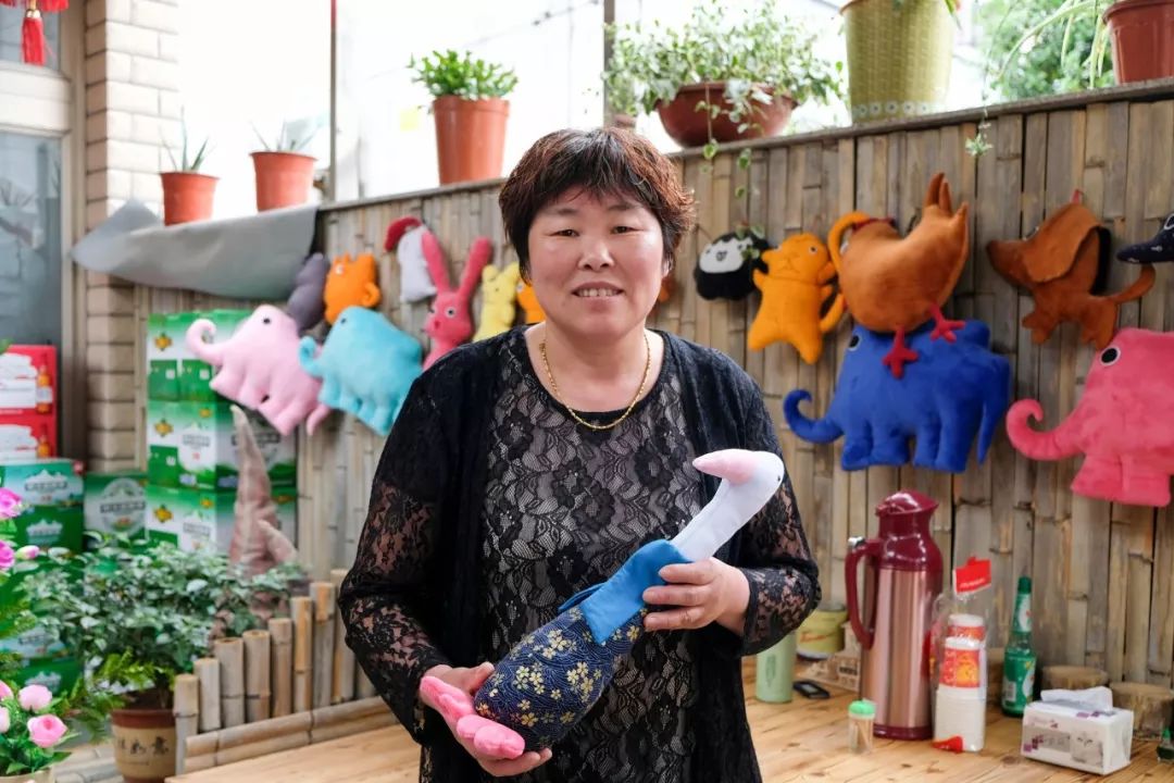 粉小仙手工艺馆老板袁小仙,就是被丛教授带着走上了艺术路。以前,她开早餐店,丛志强发现她厨艺好,就让她用面团捏一个造型出来。袁小仙尝试着用不同的蔬菜汁和出了不同颜色的面,在长方形的饼上装饰红色的“100分”字样,就像孩子的试卷。后来,丛志强又拿出从村里搜集来的旧布料,让她试着做布艺玩偶。就这样,袁小仙自信心不断提高,将自家房子进行改装开了一家粉小仙手工艺馆。