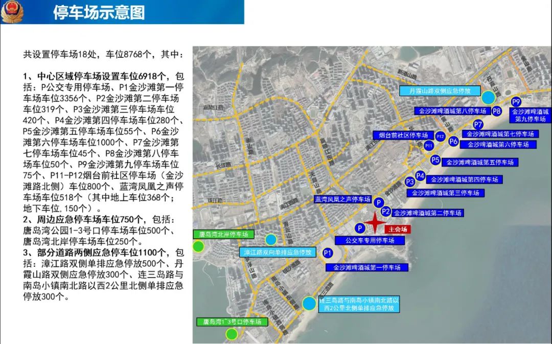 若上述停车场出现饱和,西海岸新区还提供了金沙滩啤酒城周边应急停车场车位750个,部分道路两侧应急停车位1100个。