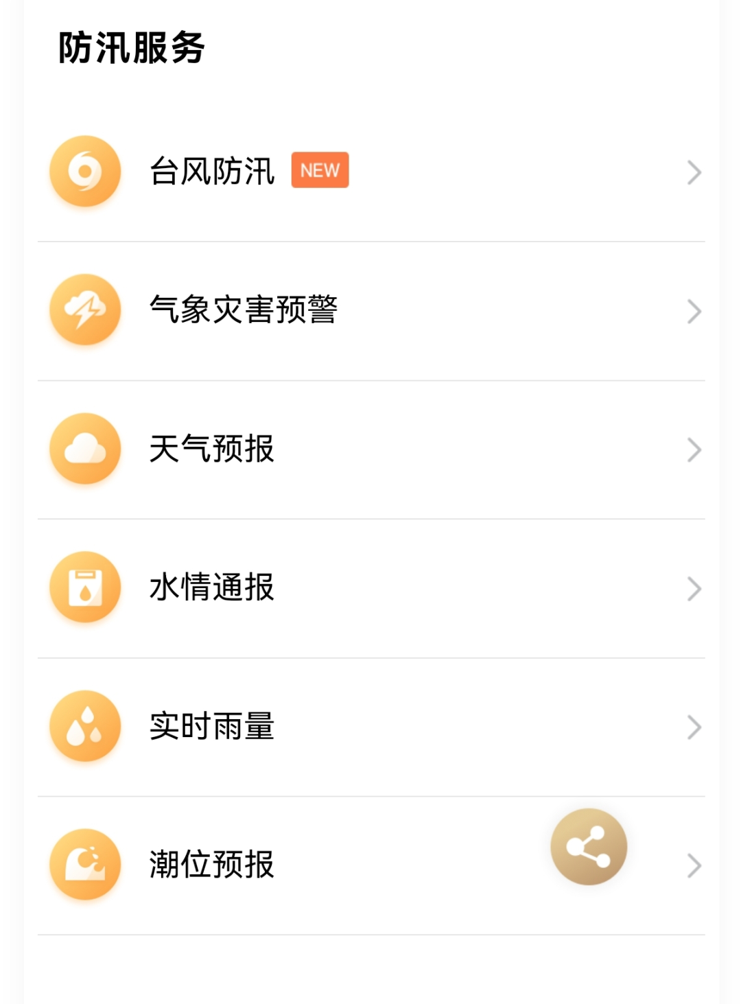 防汛服务板块中的气象灾害预警、台风防汛、水情通报、潮位预报等将帮助市民提前知晓灾害天气。