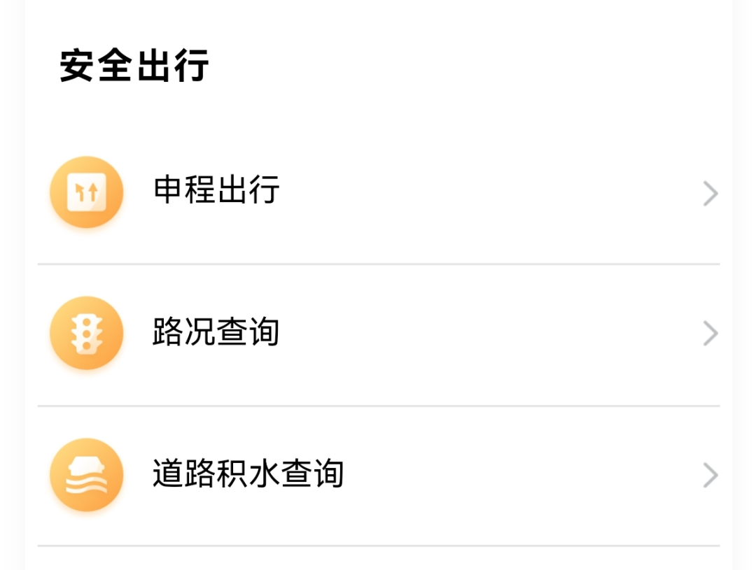灾害天气下如有出门需求,市民可以在安全出行板块使用路况查询功能,查询出发路线的拥堵情况,并使用道路积水查询,查询积水线路,合理规划出行路线,确保出行安全。