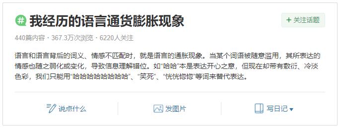 在生活交际中,语言的通货膨胀,首先体现在通哈膨胀上。