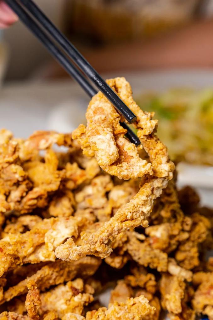 这道菜我们又找了一家26年的老店——“九龙餐厅”。这家店的香辣鱿鱼条,外面的面糊略厚,但内在口感扎实、弹性十足。