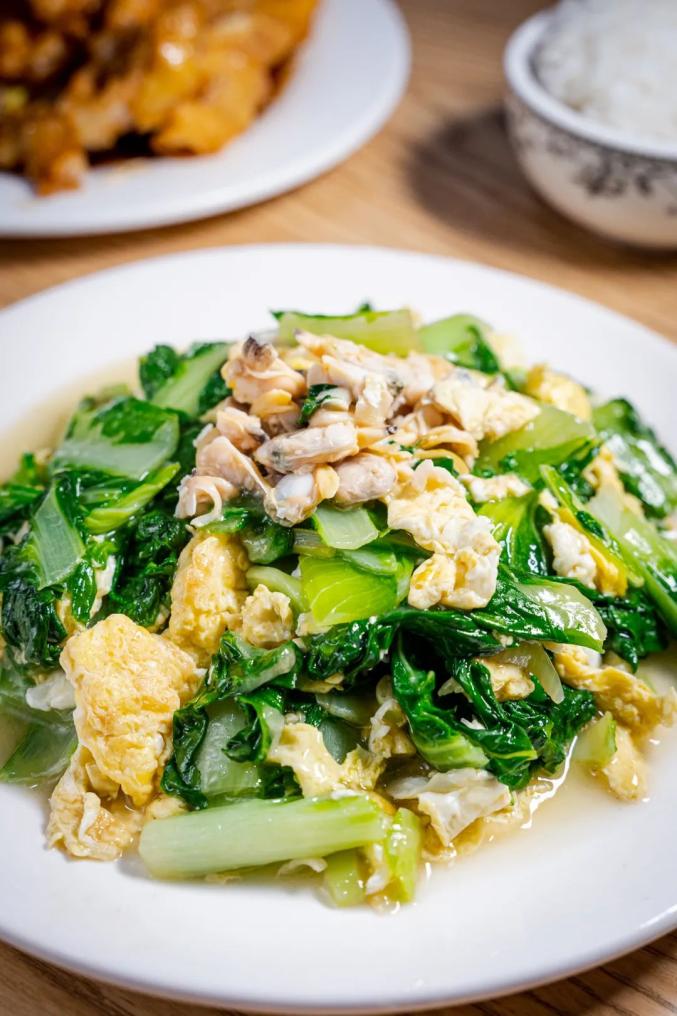 蛤蜊在青岛叫“嘎啦”,除了最常见的辣炒,和小白菜一起炒也很妙。小白菜保留了脆嫩的口感,蛤蜊又带来了一些鲜味。这个组合意外地很搭,作为清口小菜也很适合。