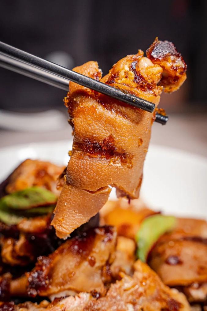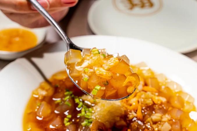 讲究的流亭猪蹄一定要用老汤做冻,做出的猪蹄色泽鲜亮,口感软糯但不粘牙。台台吃第一口的时候,脑海中立刻浮现出小时候的自己坐在沙发上边啃流亭猪蹄边看电影的画面。