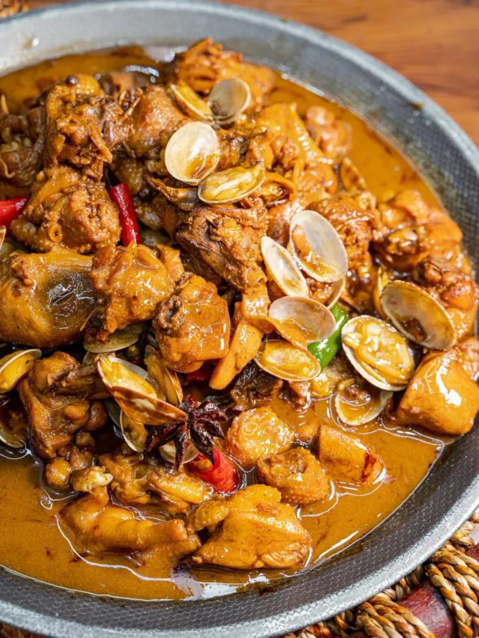 除了辣炒蛤蜊,蛤蜊和鸡一起烧也是青岛的常见做法。出租车司机告诉我们,他吃过的最好吃的蛤蜊鸡,是用崂山上的走地鸡做的。那味道鲜美无比,虽然比市内贵出好多,但他还是觉得太值了。