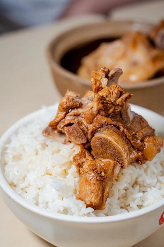 排骨一般是脊骨或是肋骨,用独特配方的酱汤炖煮得十分酥烂但不脱骨。脊骨瘦肉多,又都是带骨肉,大大满足了台台这种爱啃骨头的。吃得起劲也不顾形象了,直接拿手抓起来啃。