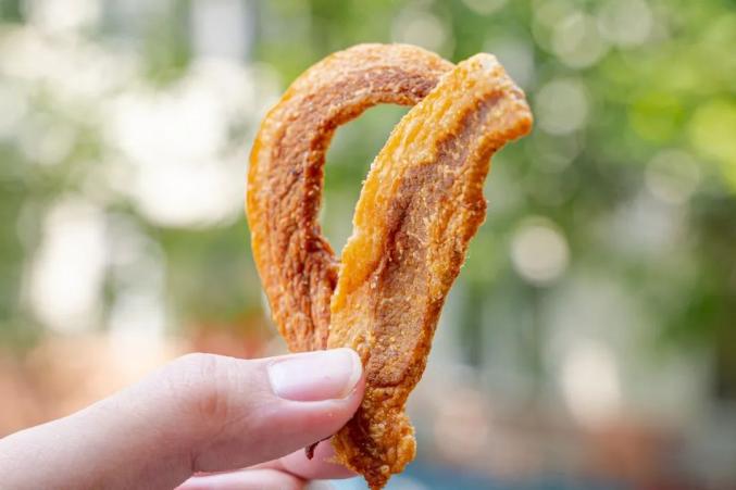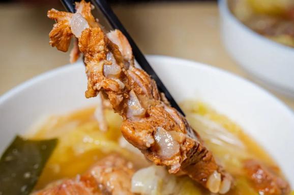 而肋骨不一样,肋骨肥瘦均匀,有浓浓肉香。有的店还会把骨头去掉,只卖肋边软骨,一口下去软糯中带着弹牙,满口油香。