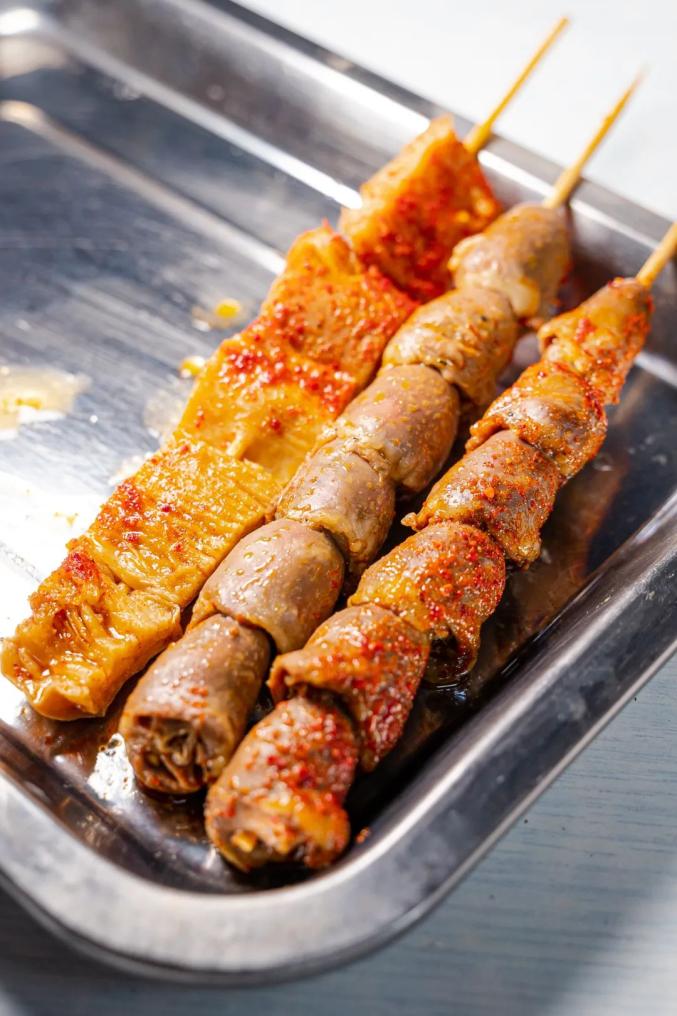微波腱子肉太受欢迎已经卖完了,我们只能买了两串微波鸡心和微波大肠头。又嫩又香,鸡心还会爆出汁水,台台真恨不得再打包二十串带走。