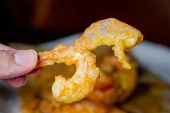 此外,青岛啤酒在市内也还有官方店,叫做“TSINGTAO1903”。店里有一道“吃虾先吃皮”台台很爱,正如这道菜的名字一样,虾皮被炸得很酥脆,甚至比薯片都要酥。