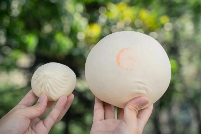 左边是正常的包子,右边是青岛的大馒头,台台早饭吃了两天都没吃完……