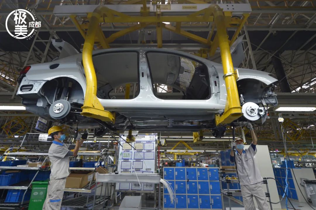 ▲成都市龙泉驿区一汽-大众汽车有限公司(成都分公司),总装车间里工作人员进行车辆组装。