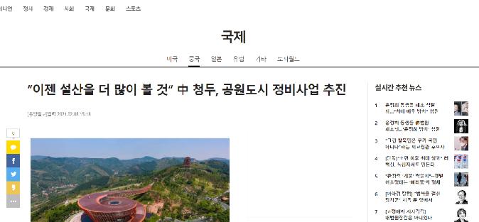 ▲韩国《中央日报》发表题为《中国成都以公园城市改变未来》的报道
