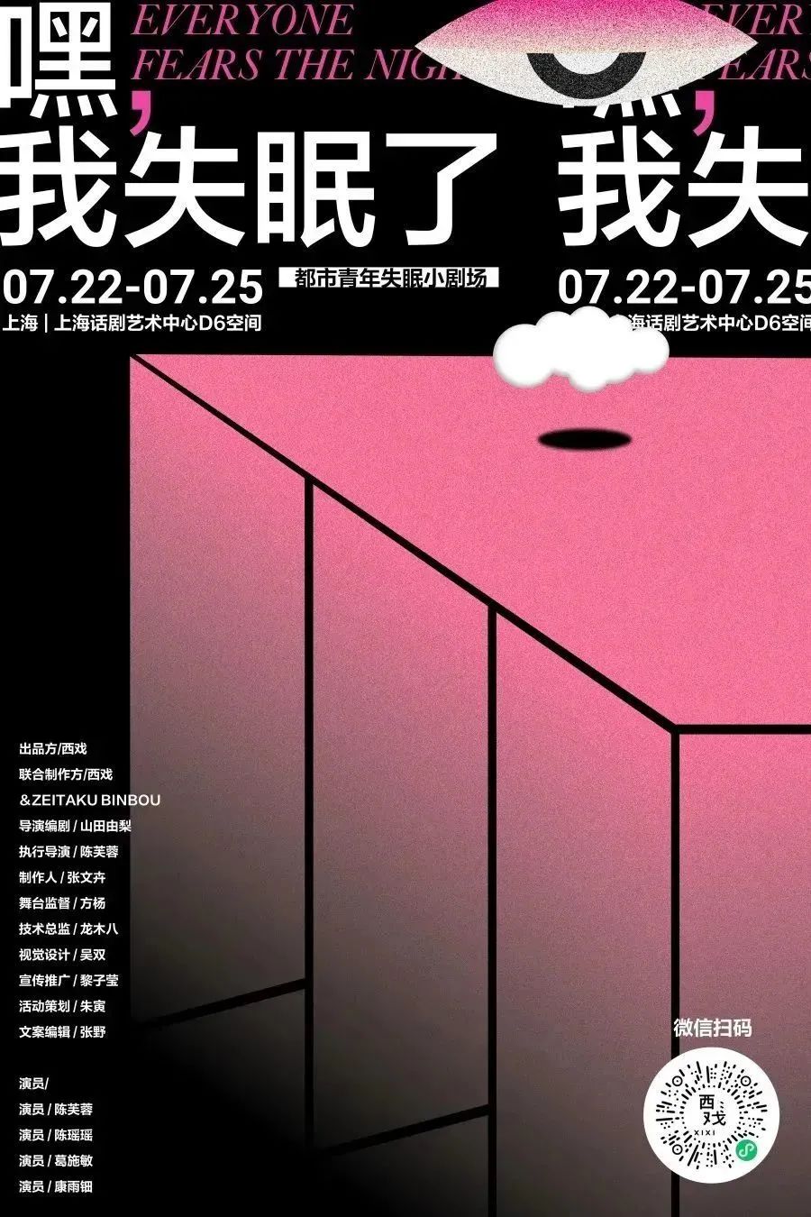 2021年7月22日晚,由西戏联合日本ZEITAKU BINBOU剧团制作,山田由梨执导的话剧《嘿,我失眠了》,在上海话剧艺术中心·D6空间完成了首场演出。