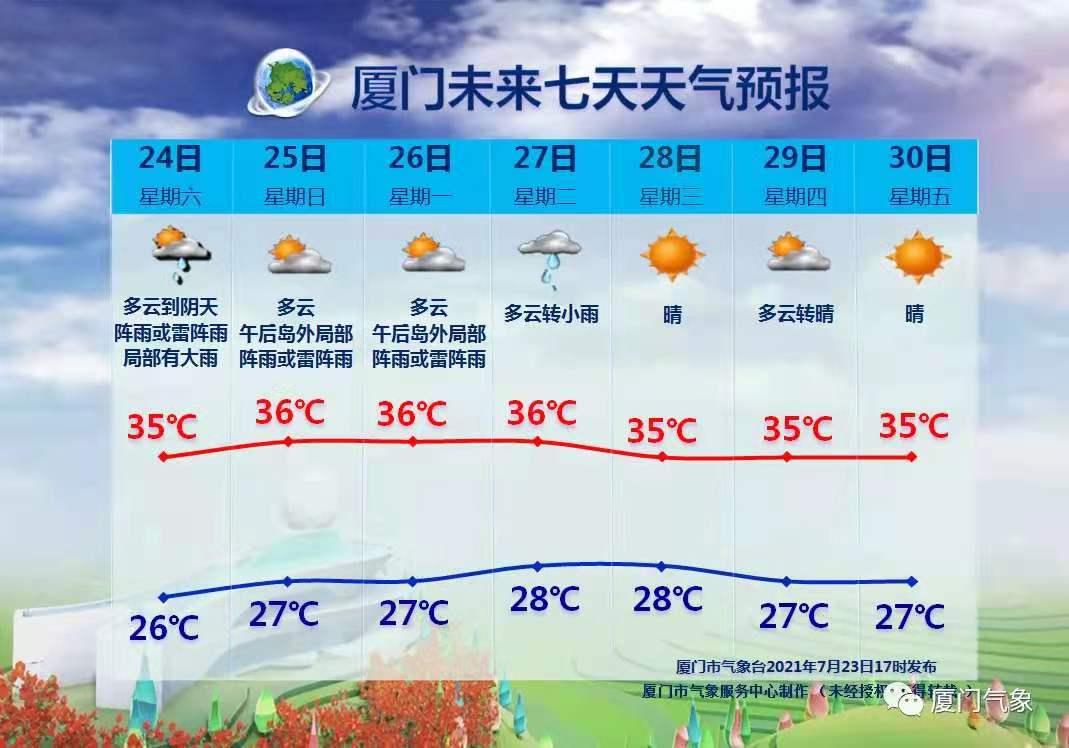 未来几天,厦门及近海有分散性阵雨或雷阵雨,局部地区有大雨,沿海风力会明显增大,在台风影响区域的船只要注意及时回港避风,沿海养殖区、港口和滨海工程设施提前加固,做好防范工作。