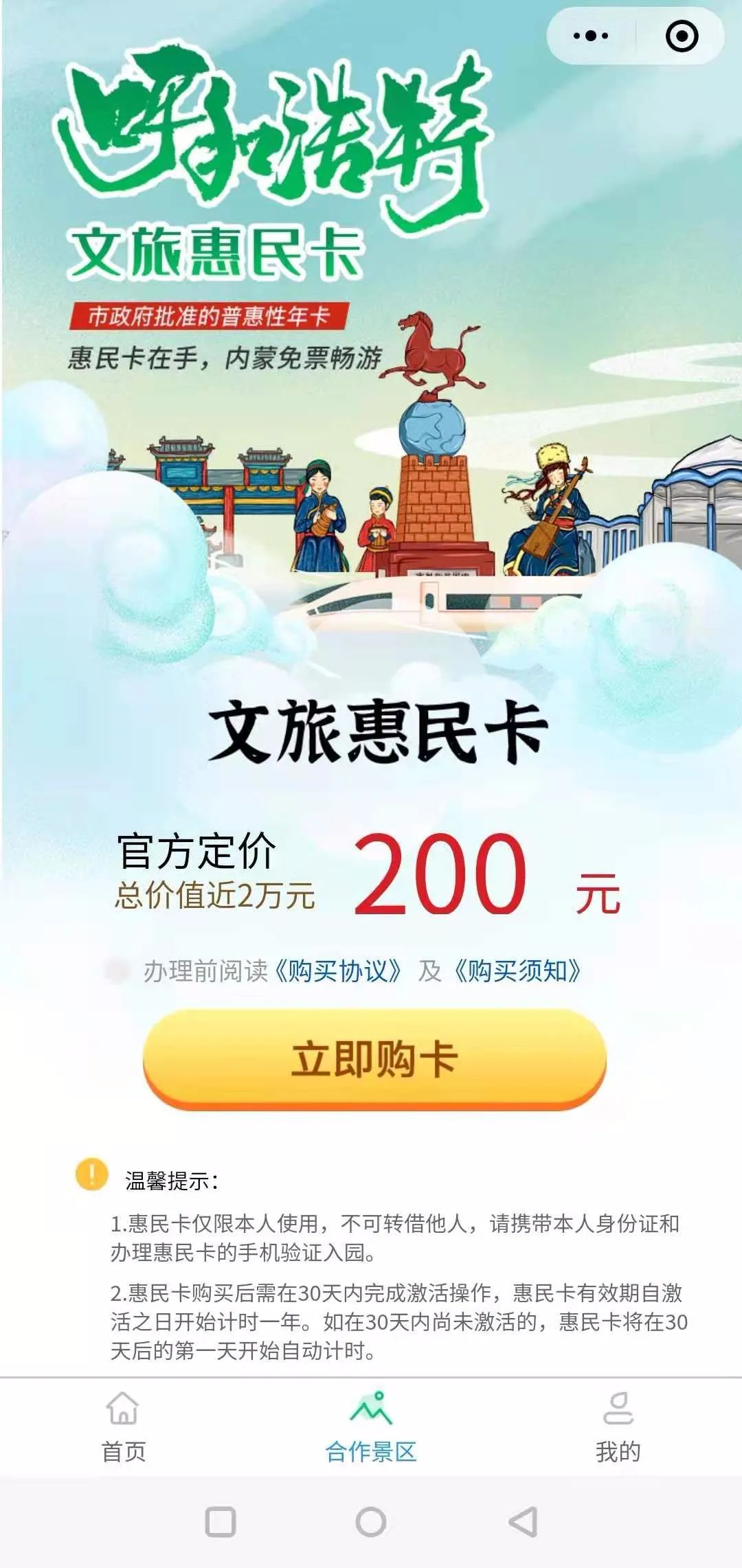大家可以在小程序内搜索“呼和浩特文旅惠民卡”