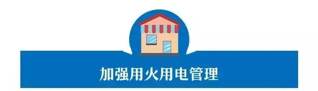 加强用火用电管理,按有关电气规程敷设电气线路和设备。停止营业后,铺面内的所有电源全部切断。商铺内如无独立划分的厨房,应严禁明火煮食,限制采用大功率电器设备。