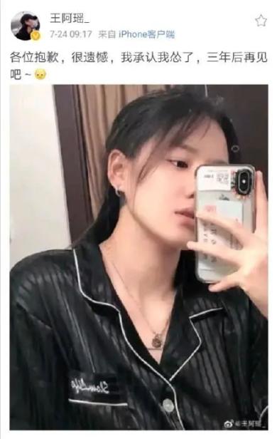 在东京奥运会射击10米气步枪无缘决赛后,中国选手王璐瑶在微博发了一张自拍照,并写下“各位抱歉,很遗憾,我承认我怂了,三年后再见吧”。