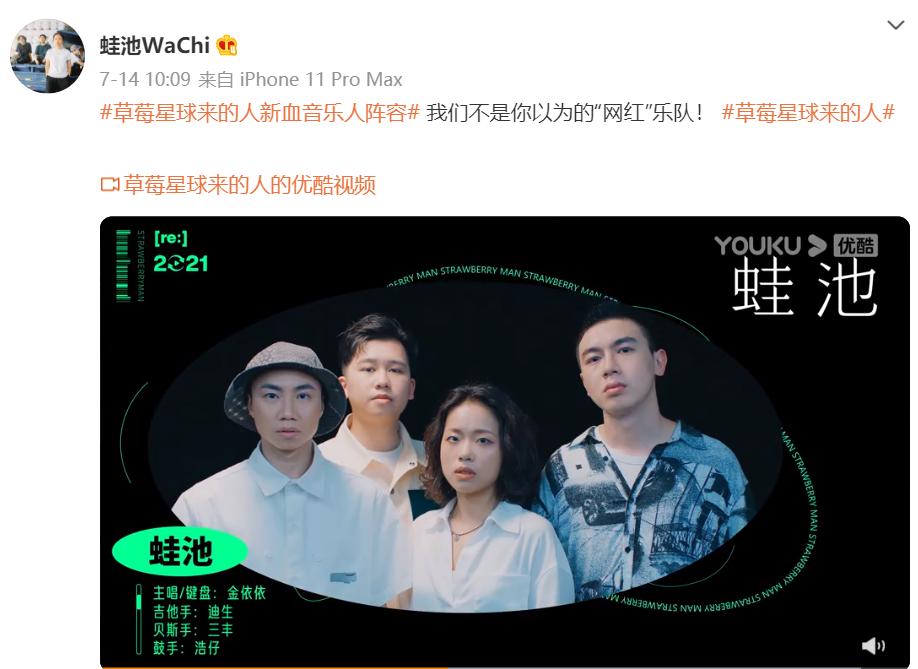 周五晚上,蛙池乐队亮相《草莓星球来的人》。