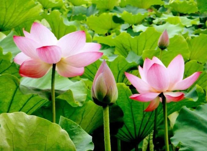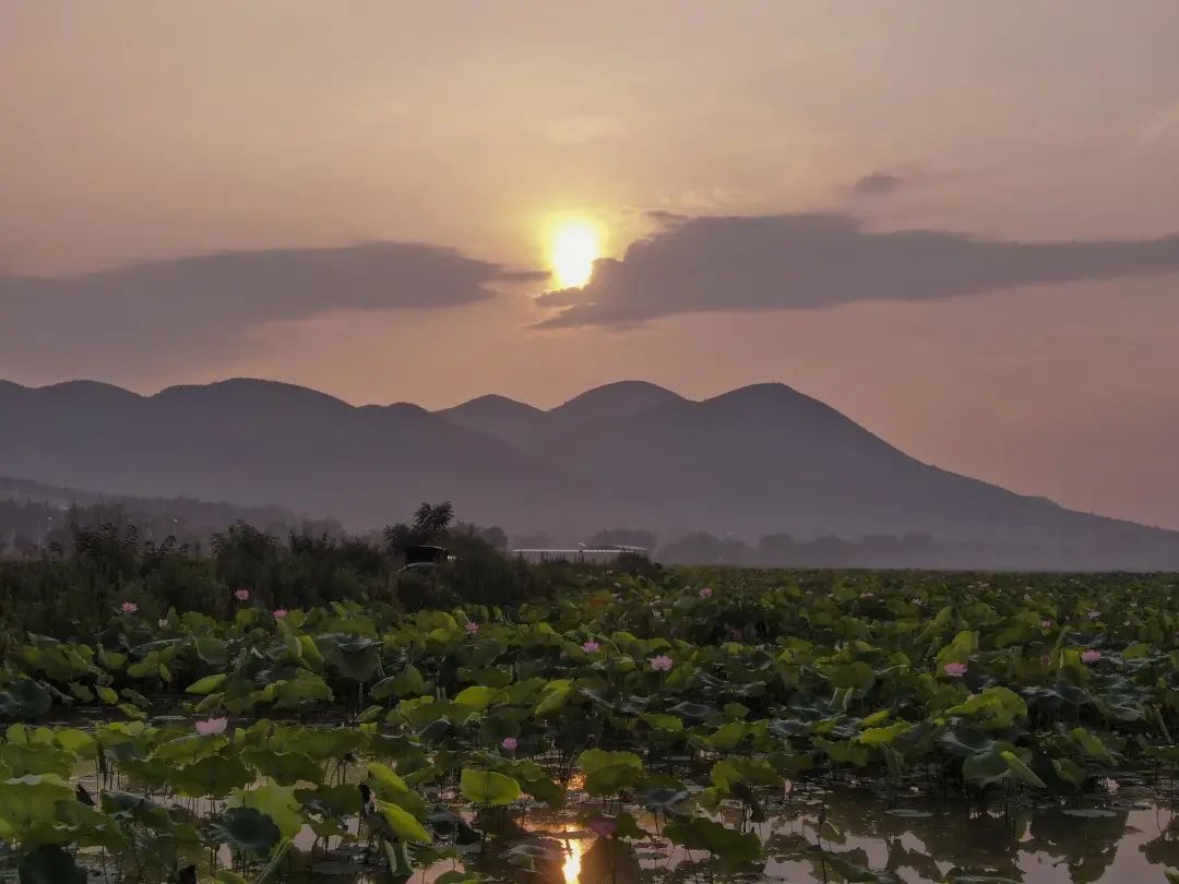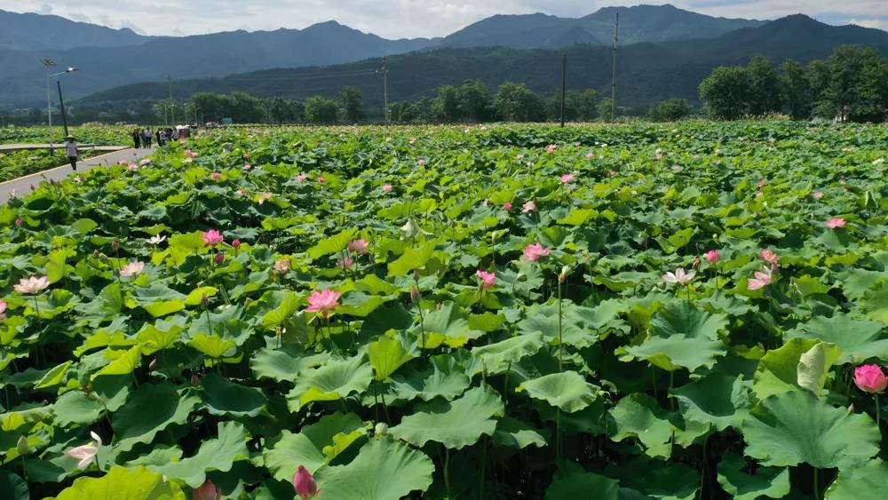 红粉纱衣,翠色罗裙,在宁远县九嶷山西湾村,万亩荷花连绵起伏,像地毡般铺满水面,尽数展现美景。此情此景怎么能忍住拍个美照?