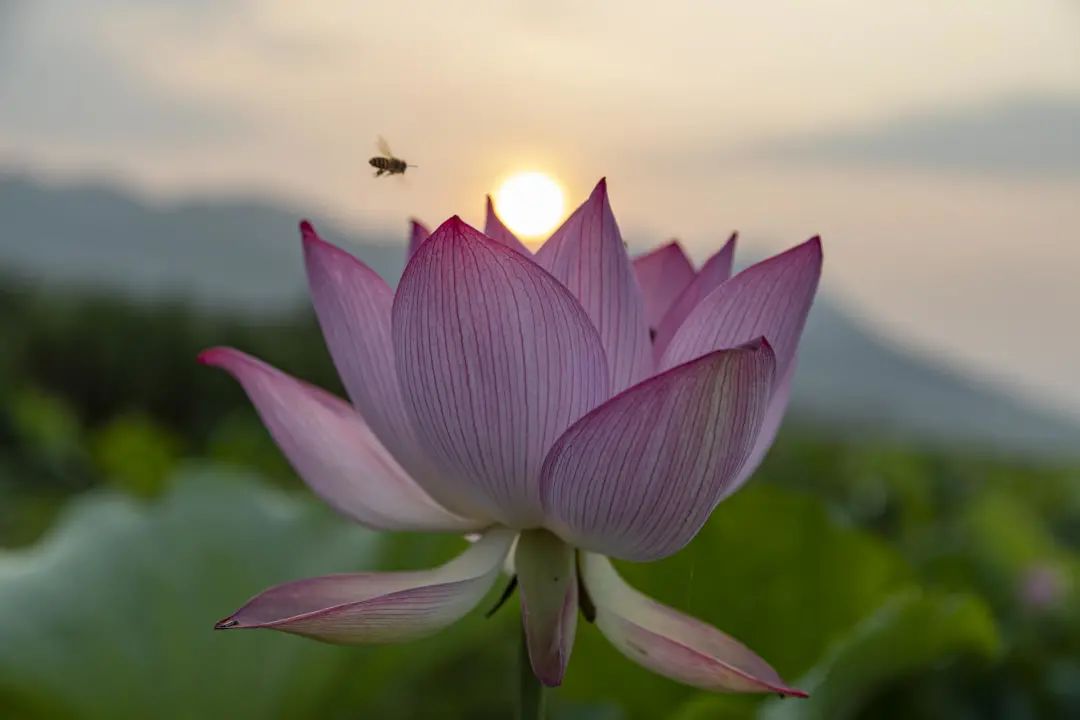 清晨,走进蓝山雷家岭村荷花种植基地放眼望去,只见在层层的荷叶中间,零星地点缀着朵朵粉白相间的荷花,娇艳的花瓣与翠绿的荷叶相互映衬,一只只勤劳的小蜜蜂在荷花里翩翩起舞,眼前呈现出一幅“接天莲叶无穷碧,映日荷花别样红”的美丽风光画卷。