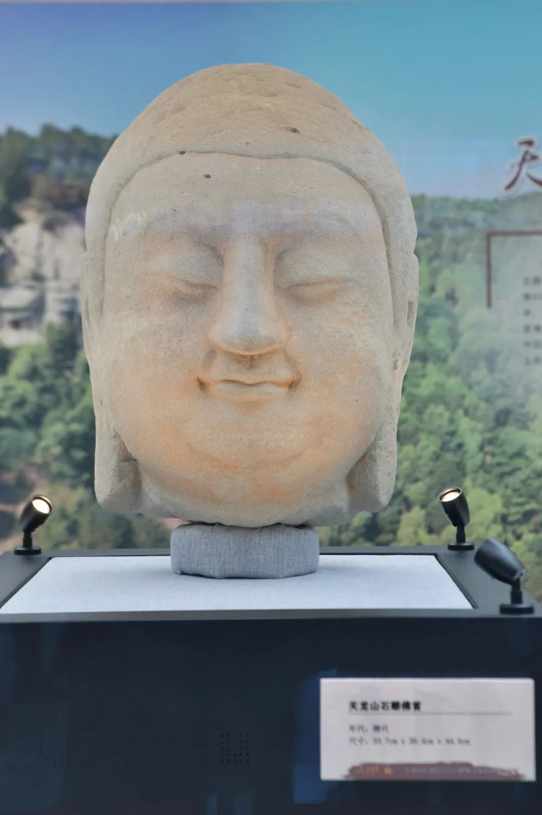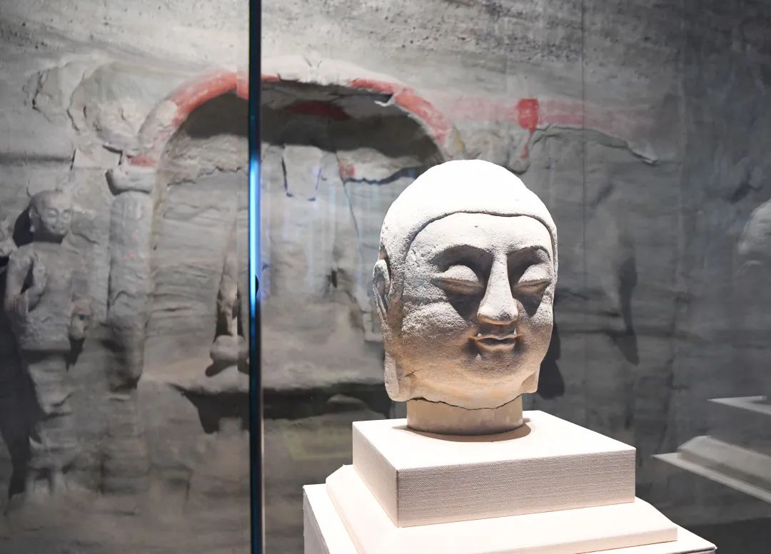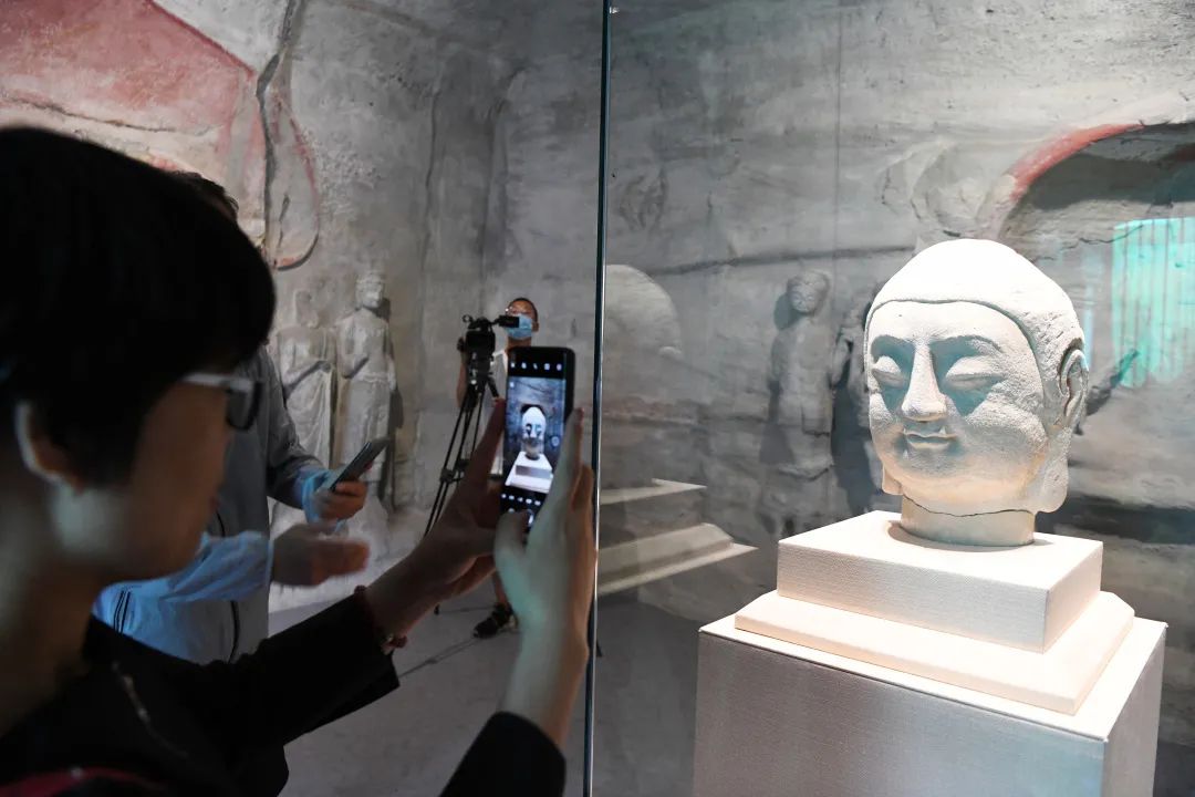 2月12日—4月18日,佛首首次面向公众,在北京鲁迅博物馆与太原市天龙山石窟博物馆共同举办的《咸同斯福——天龙山石窟国宝回归暨数字复原特展》中展出;