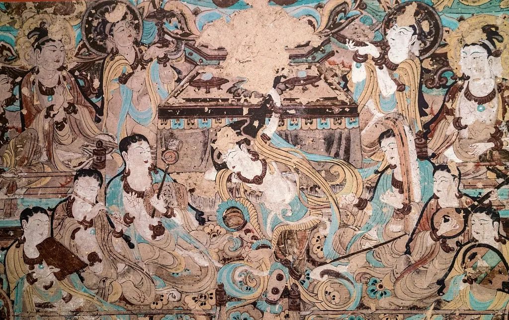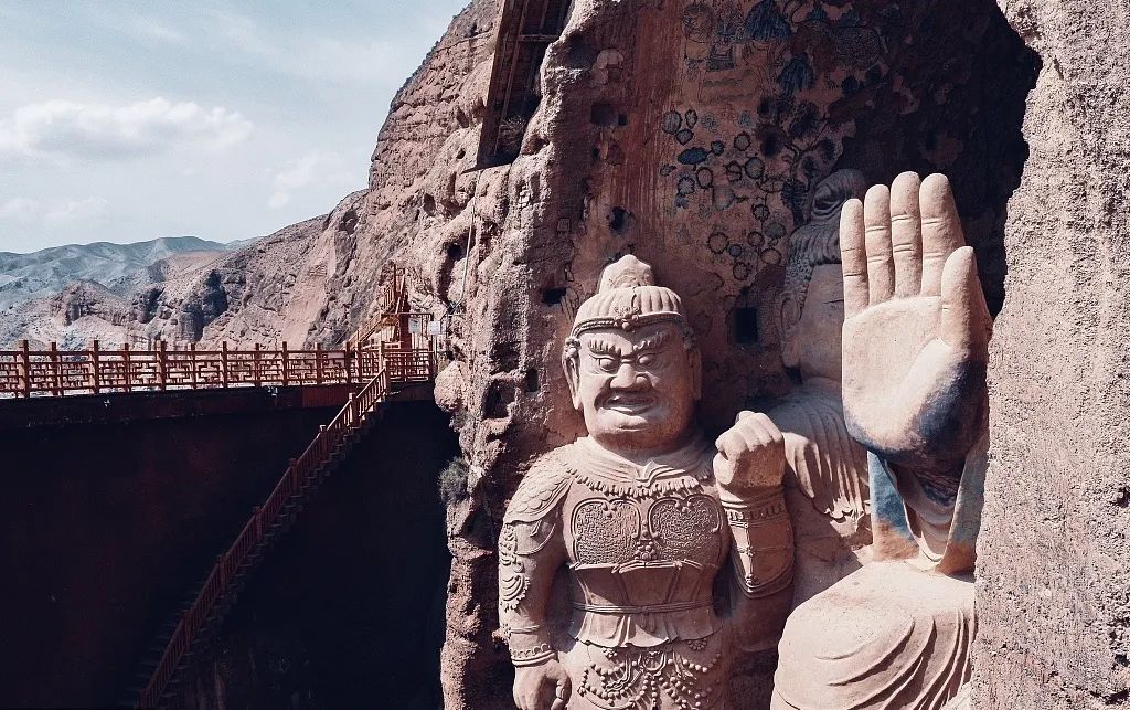 顺着石窟游览,不同时期不同朝代的珍贵壁画雕塑层叠分布:北凉、南北朝、隋唐、西夏……