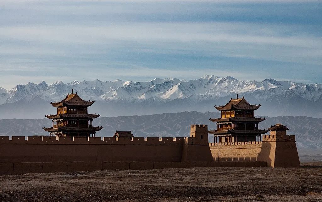嘉峪关城门之下,走过丝绸之路的驼队,有过金戈铁马的厮杀。时过境迁,昔日纷争不在,只剩下连绵雪山和绝美边塞风光,依旧如故。