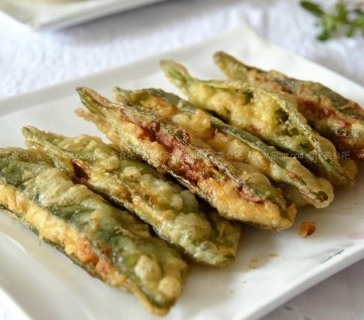 大扁儿分批成长,层出不穷,好像总也摘不完似的,可以从夏末一直吃到深秋。摘一小盆大扁儿下来,洗干净后切成斜丝,和猪肉丝一起爆炒,吃在嘴里会有一种非常别致的扎扎的、绒绒的感觉,而且有一种独特的清香。大扁儿还有一种比较讲究的吃法,叫炸大扁儿盒。把瘦猪肉末儿加上盐、葱姜末、胡椒粉再点上几滴香油和成馅儿。